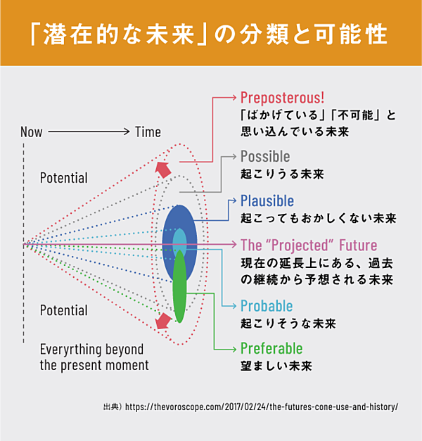Voros, J. (2017, February 24). 未来の円錐、その使用と歴史. The Voroscope. https://thevoroscope.com/2017/02/24/the-futures-cone-use-and-history/